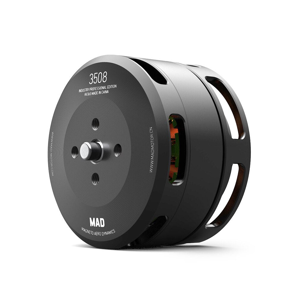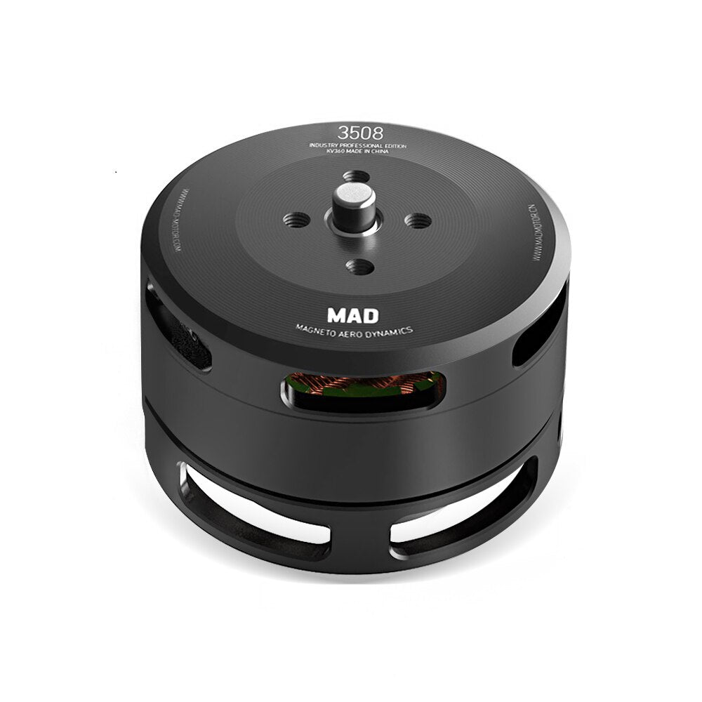 MAD 3508 IPE brushless motor for commercial and industrial drone. Industry profession edition is designed to achieve waterproof and dust proof IP35 degree of protection. Design compatibility of mounting holes for propeller and setup installation. High performance and low power consumption at high voltage applications. Make the air flow faster, heat dissipation faster, using a unique motor core design, more stable rotation, high efficiency, and provide you with better safety guarantee.